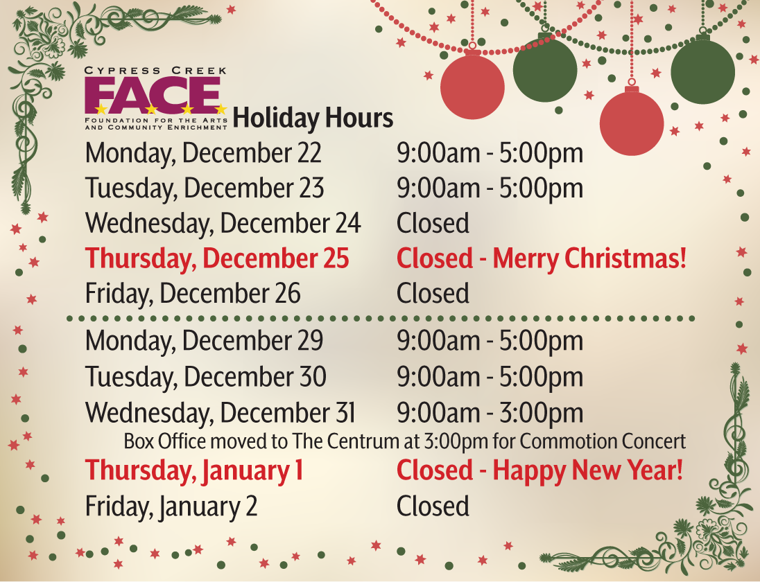 The Centrum Arts League is the official guild that supports Cypress Creek FACE. This volunteer group raises funds each year to sponsor the Free Children’s Series, the Focus on Education scholarships, the Summer Camp program as well as helping to fund the FACE operating budget. Click her for more information or to join.